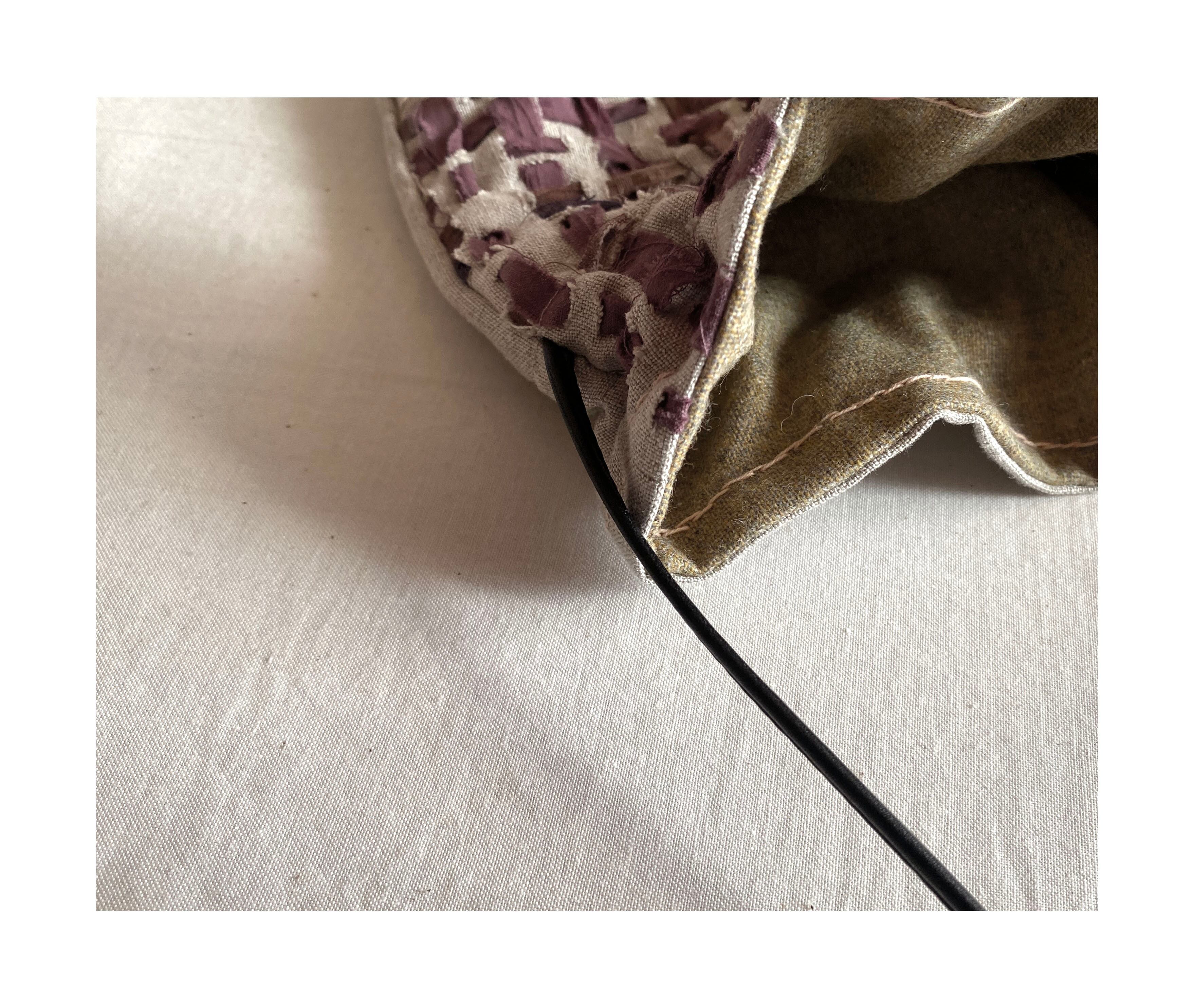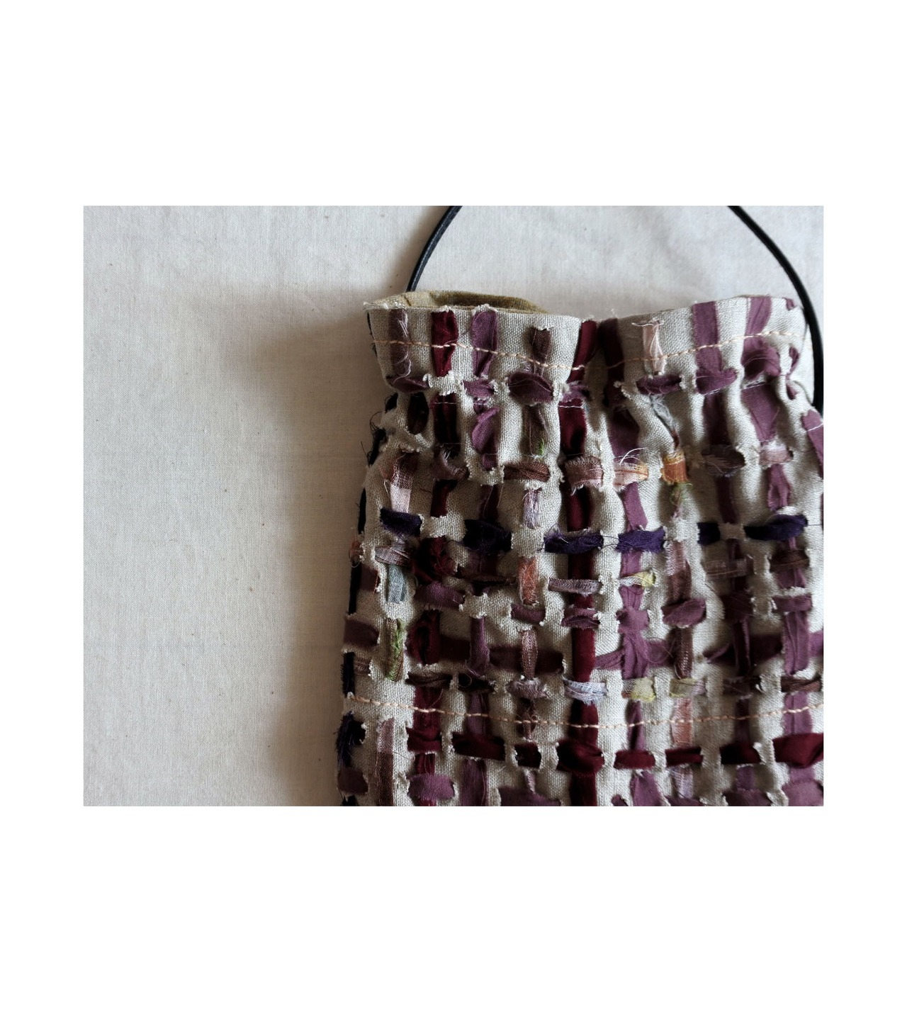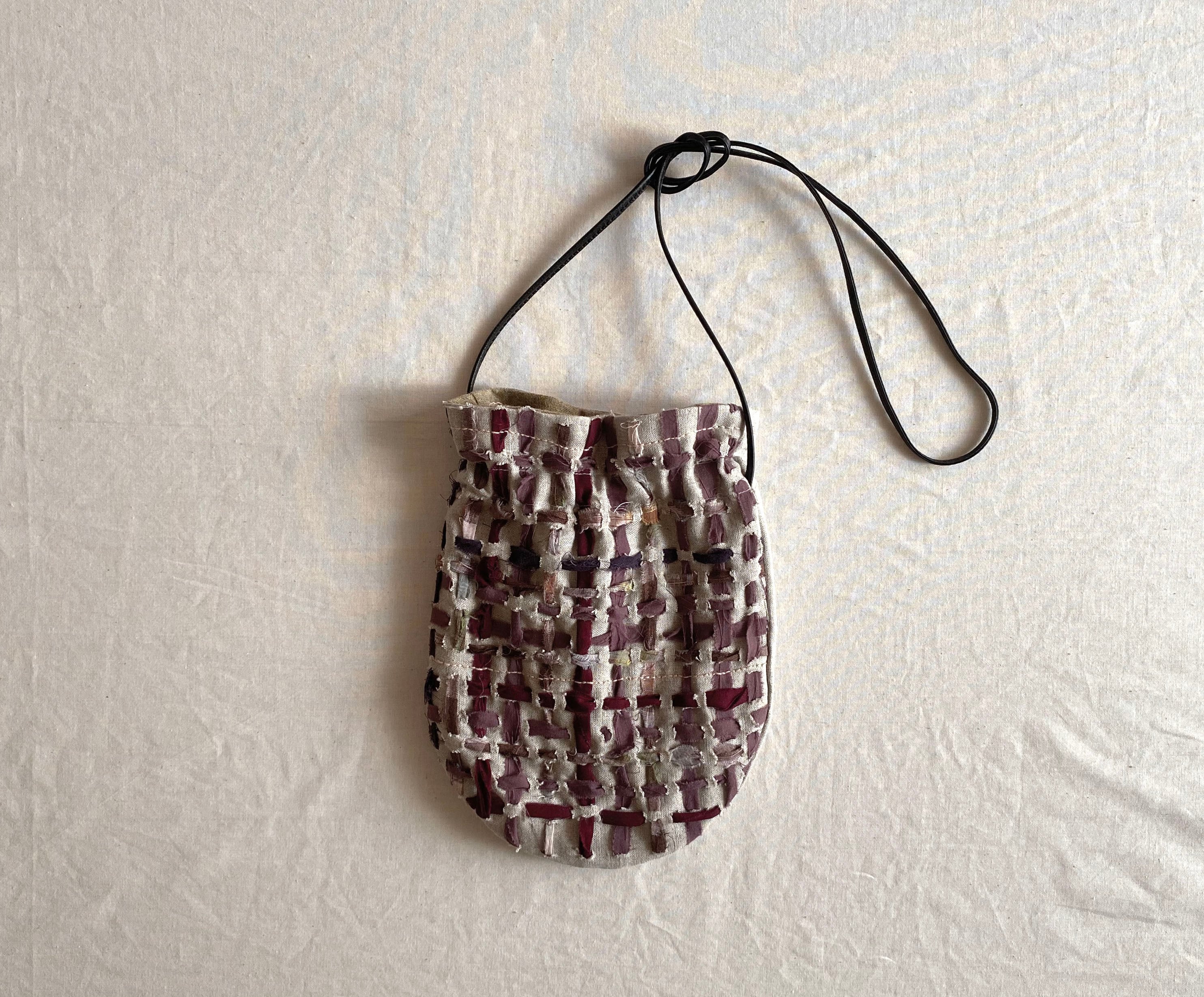 素材:リネン 裂織(着物)リサイクルウール 紐:合成皮革